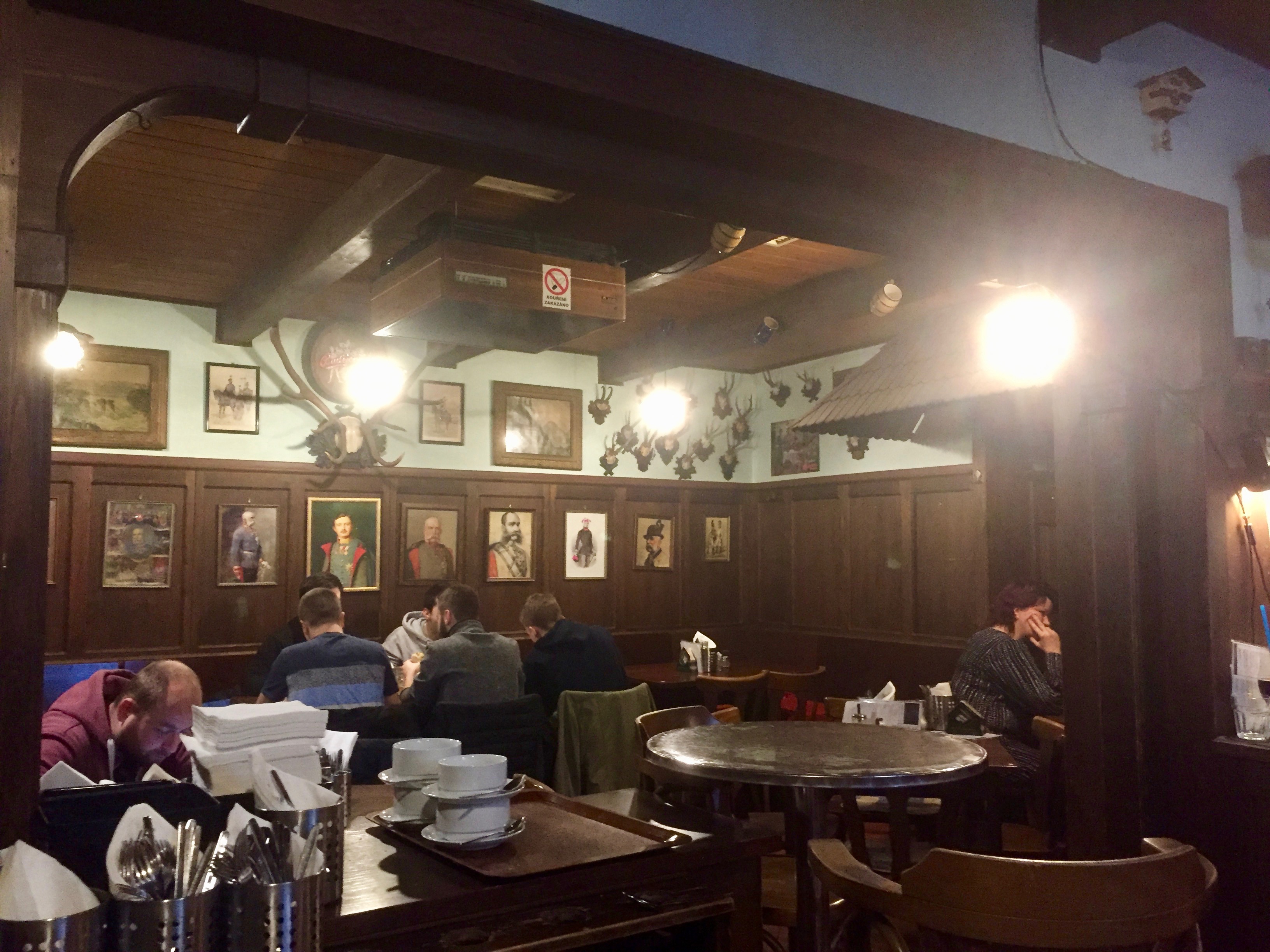 Nosotros, en esta visita, tuvimos la suerte de conocer a personas muy amenas, en las que queremos destacar a nuestro nuevo amigo Luciano, un brasileño que vive varios años en Brno. Eso nos dio la ventaja de tener un guía que nos llevó a varios sitios que quizás yendo solos nunca hubiéramos llegado. Uno de ellos fue el U Karla, un clásico restaurante checo en donde pudimos beber cerveza local y degustar de varios platillos que como ven en las fotos, estaban espectaculares. Lo mejor fue al momento de pagar: 400 coronas, que aunque suenan muchísimo, no son más que 15 euros.